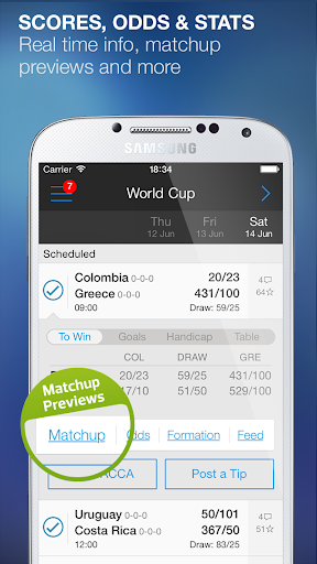 With Onside Sports you get access to all the UK and Scottish football competitions and international football (soccer) including complete FIFA World Cup 2014 coverage in Brazil. Get advanced statistics on all the games to help you make an informed sports betting decision. In addition to having advanced stats at your fingertips, Onside is an active sports betting community where you can make tips (or virtual bets) and see predictions from a community of sports betting experts and handicappers. Also, track your performance to how you do. With millions of sports predictions and tips made, it is easily the largest such community on mobile today.