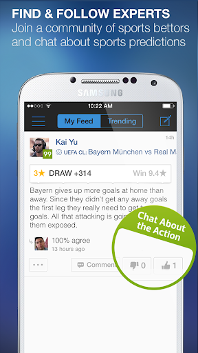• A sports betting community. Chat your people in the app, tweet out your tips or just post your opinions on lines and games.