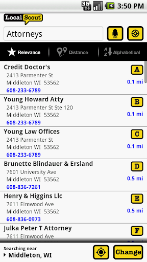 Find businesses, get directions, click-to-call a business, download coupons, and find enhanced information on business profile pages by toggling between a voice-driven list-view and an advanced map view. Yellow page publisher participation ensures accurate local content in many areas.