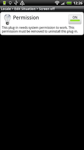 Turns your screen off, based on Locale or Tasker condition. You can use it with the Proximity Locale plug-in to automatically turn your screen off when putting your device in your pocket, or when you put it face down on your desktop. This helps saving battery life.