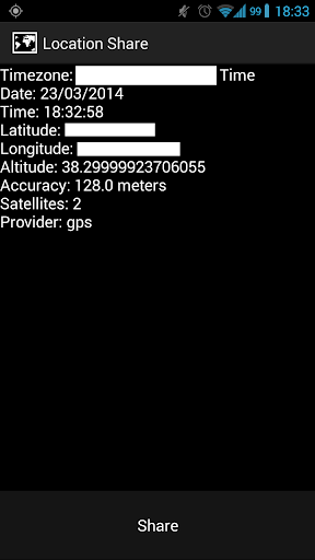 Simply want to quickly share your current location? Location Share is a very simple location finding and sharing app. Given the sensors currently activated, the app will find your location and offer the opportunity to share the location using Gmail, Twitter, Facebook and other apps currently installed on your Android. The data is compiled in a simple text format which is easily shared with other apps.