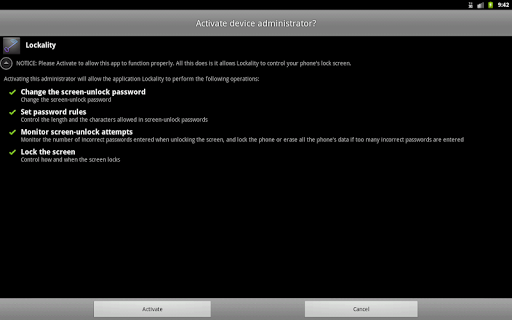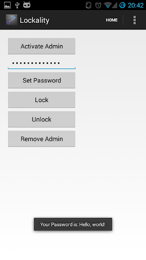 1) Please activate the Device Administrator. This is what allows the app to interact with the lock screen password, otherwise this app will not function.