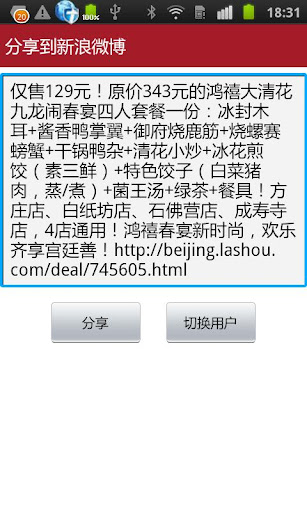 v1.1 增加了分享到新浪微博的功能,优化的用户体验。