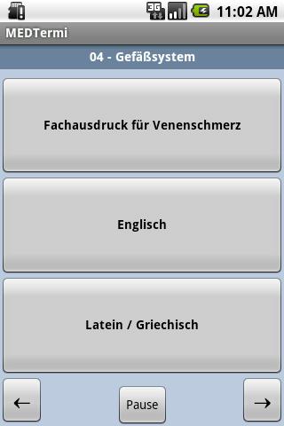 Sie können die Fachbegriffe nach den zugehörigen Themengebieten wie Herz & Kreislauf, Niere, Orthopädie, etc. oder Querbeet durch alle Themengebiete durchgehen. Jeder Fachbegriff ist auf Deutsch, Englisch und Latein oder Griechisch hinterlegt und Sie können wählen, nach welcher Sprache geprüft werden soll.
