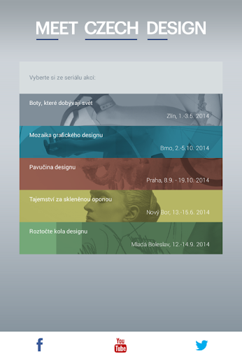 Mobilní aplikace obsahuje aktuální program a místa konání jednotlivých výstav, speciální akce, design mapu a další.
