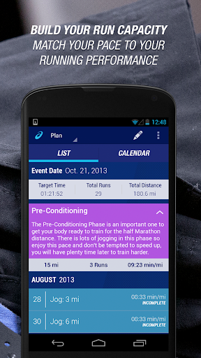 * 查看训练计划,了解时间安排、阶段和即将进行的跑步等信息。