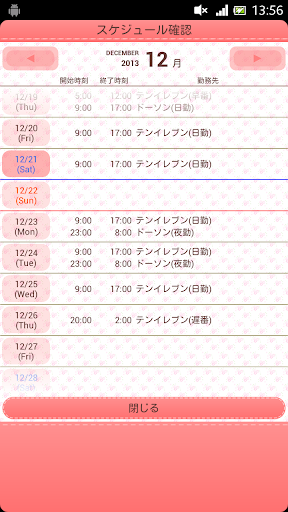 免費玩MYシフト勤務表 for Ladies App