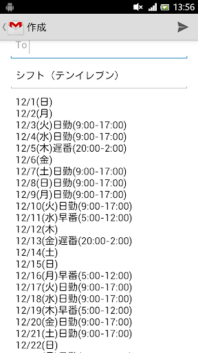 ⑦勤務スケジュールをメール送信する