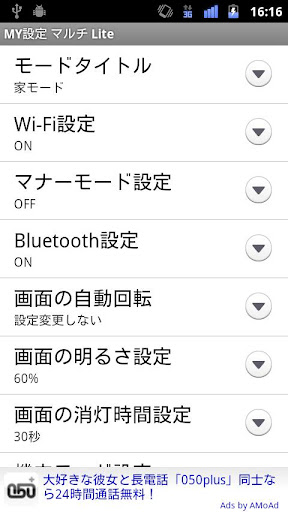 インストールした「MY設定 マルチ Lite」のアイコンをタップし、設定画面で各モードの設定を登録してください。