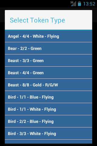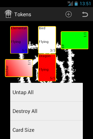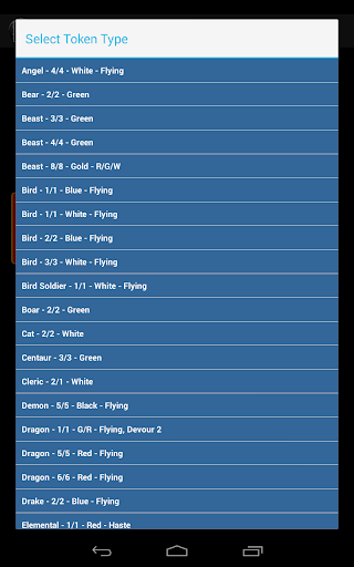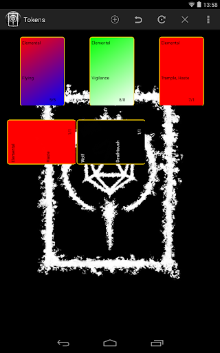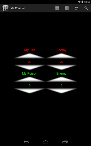 Magic: The Gathering life counter and token manager. Keep track of your life and poison counters as well as your opponent's. Have a deck with tokens? You can keep track of your tokens on the battlefield as well! Add +1/+1 counters, destroy tokens, tap all tokens, it's all available at the click of a button! Never again be forced to carry around boxes of tokens for your decks! Need to flip a coin or roll a die? It's all right here!