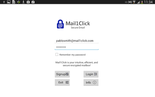 You can access your encrypted mailbox using the your Android smart-phone or by the web mail interface available at: https://www.mail1click.com