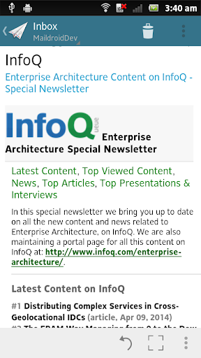 MailDroid has all the features you could want from a mobile email client and it continues to be built around user feedback. With the ability for IMAP users to sync draft mails, sent mail, deleted mail based on when they are on wifi or mobile as well as pop3 preload capability, MailDroid was built with mobile data in mind from the start. MailDroid also is an email client focusing in on what business users want such as choosing to delete an email locally or from both device and server per email read as well as custom rules to alert and move certain email to folders. Finally, for the power users there is even encryption capability using open PGP and S/MIME. MailDroid will allow you to encrypt and/or sign email using open PGP in the MIME format or Inline format and allow you to encrypt and/or sign an email using S/MIME. There are so many other features that can be found in the app, see a sample below: