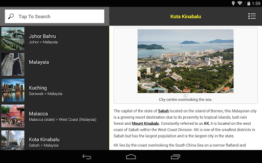 Malaysia GuideWithMe is an offline travel guide, which recommends detailed articles around the country in relation to your current location. Developed by travelers and for travelers, GuideWithMe is a rich source of general travel info as well as off the beaten track advice.