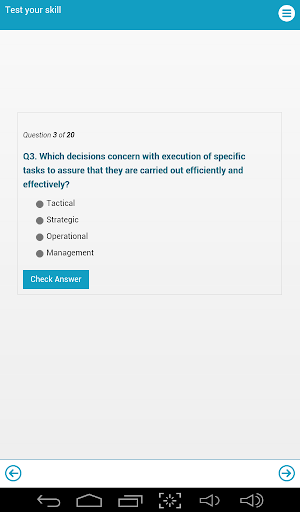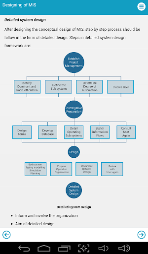 The Management Information System Android App by Knowledge flow. This application is for all management and IT students and professionals across the world. This App provides Management Information System quick references with suitable diagrams along with simple reading language explaining the topics and test your skill with multiple choice questions.