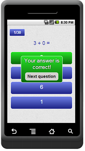 This application Level 2 (L2) is for youngsters just learning the basic of addition (0-1). Each math question will include a multiple choice answer to select from.
