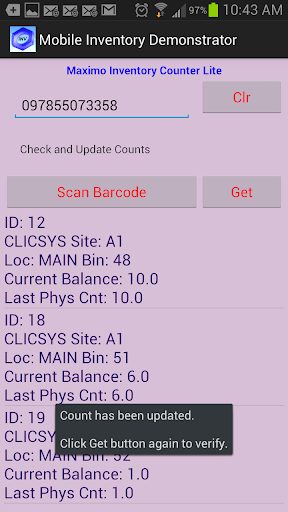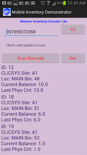 The ClicSysCounter/Maximo Mobile Demo Tool is a fully functional mobile inventory client with bar-code scanning for use with IBM Maximo 7.5.