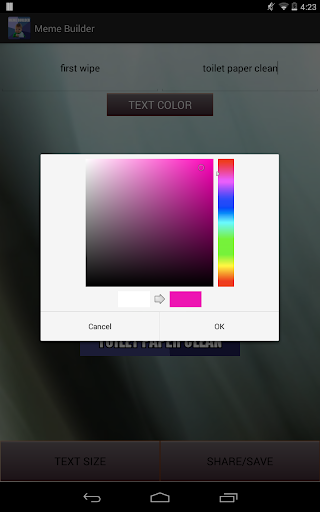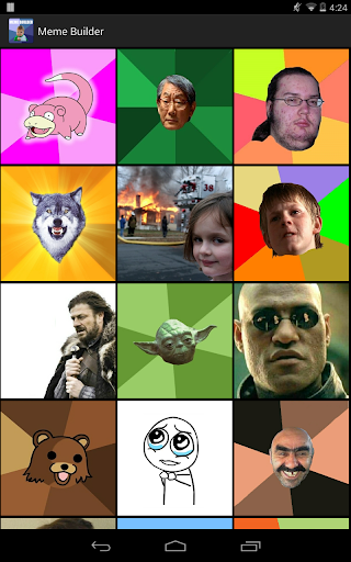 Using Meme Builder allows you to build hilarious memes and share them with friends via text messages, email, Facebook, Google+, Instagram, Google Drive, etc...