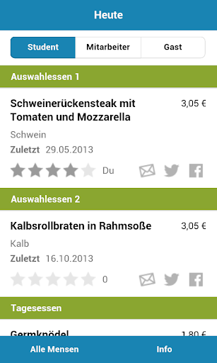 Die folgenden Speisepläne werden von der App bereitgestellt: