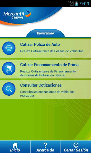 Mediante la funcionalidad Cotizador Móvil de Auto, te ofrecemos la facilidad de autogestionar desde cualquier lugar la Cotización de Pólizas de Vehículos Individuales de Mercantil Seguros, así como la opción de Cotización del Financiamiento de dicha Póliza, a través de su dispositivo celular.