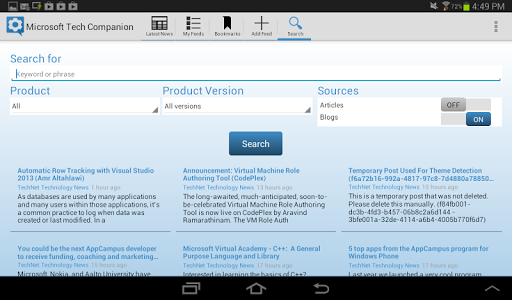 • Streaming news – Microsoft news, events, you name it; it all streams to the app’s news reader