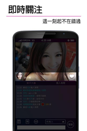 隨時隨地跟你心愛的VJ視頻互動?不論在下班後、上課前、回家路上,手機打開就可以立即與所有各式各樣不同的VJ聊天、互動,在心情煩悶時突然想找個人談心,還是下班後想放鬆一下心情,安靜的聽著VJ一首又一首感動人心的歌曲,又或者是線上的課程教學,烹飪、吉他、編織,登入屬於你個人的專屬演唱會,出發!讓夢想持續發熱