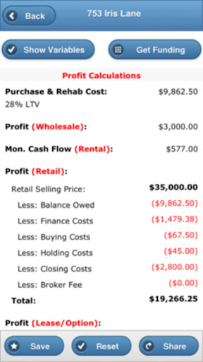 The Mobile Real Estate Investing (MREI) App Is The First Product Ever That’ll Allow You To manage your real estate investing business Without being chained to your desk. You can analyze properties using strategies, such as wholesale, fix and flip, fix and hold, lease option and owner-financing. Analyze properties using as many as 27 parameters. Adjust parameters in real-time to immediately see the affects of those changes.