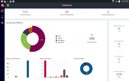 • Dashboard with an actionable snapshot of your MobileIron Core deployment.