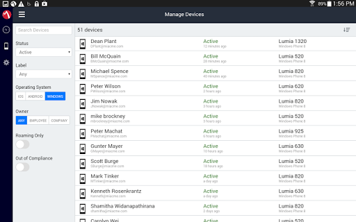 Insight enables IT administrators to quickly find and act upon all BYOD and corporate-owned devices, no matter where they are.