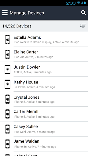 • Powerful keyword search by first and last name, username, email, phone number, device type, device model, and device carrier.