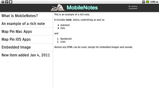 Tired of carrying around cheat-sheets, quick reference cards and other notes? MobileNotes runs on your Android device and connects to the company note server. People wishing to publish cheat sheets and other reference cards submit those notes to the server, and when you are in the office those notes sync to your device. Now, when you are on a customer site, you have all the collateral available for you, in the palm of your hand.