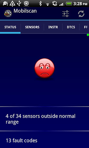 MobilScan gives access to car information as defined by the ISO standards about OBD, this means that you can read out fault codes, continuously receive and display a full list of engine parameters like oxygen sensor readings, air mass, temperature sensors and other parameters used by the engine control computer (ECU).