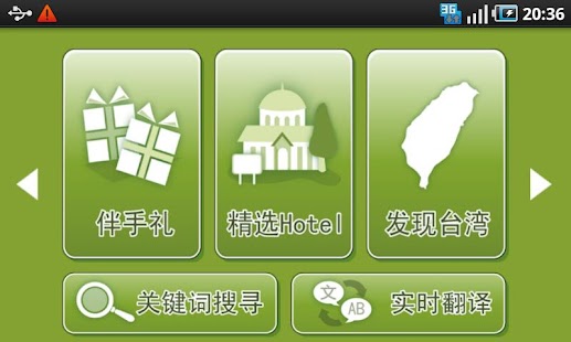 伴手禮、精選Hotel、發現台灣、關鍵字搜尋、即時翻譯