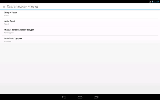 Та бүхэн энэхүү бяцхан толь бичгээ online мѳн оffline нд ѳргѳнѳѳр хэрэглэнэ үү.