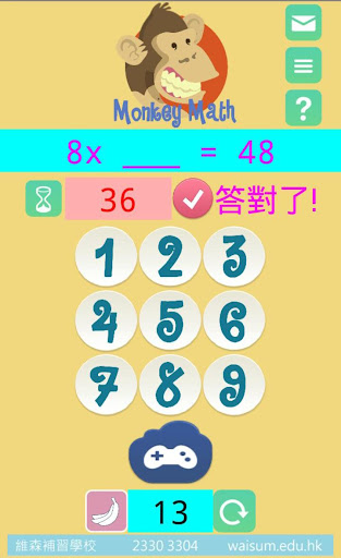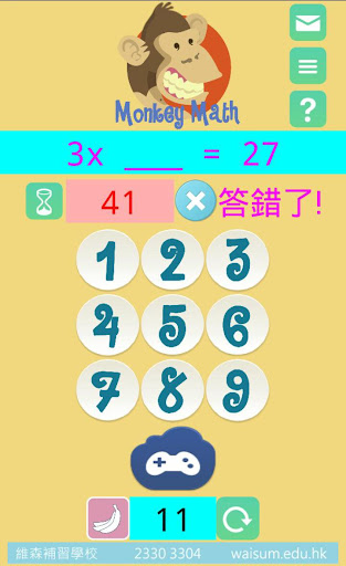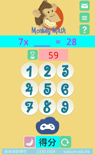 Monkey Math 乘數速學遊戲 是一款專為小學生設計的乘數速學應用程式,以遊戲形式增加小孩對學習乘法的興趣,以不強迫的方法,在無意識及輕鬆地記憶乘數表。