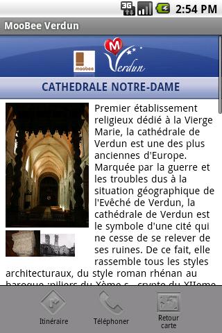 Moobee Verdun est un guide touristique mobile. Grâce à cette application, vous découvrez et visualisez toutes les bonnes adresses touristiques de Verdun et sa région (hôtels, restaurants, lieux de visite, ...) autour d'une position géographique, grâce au GPS, ou autour d'une adresse renseignée.