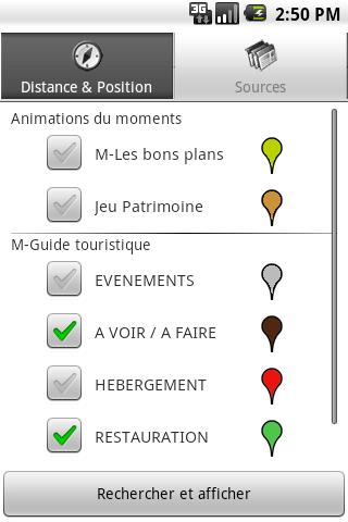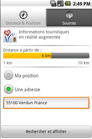 - Recherche des sites dans un rayon de 10 kilomètres autour de votre position. Choisissez-vous même la distance de recherche