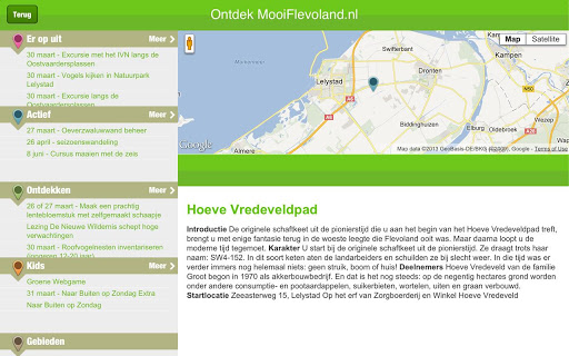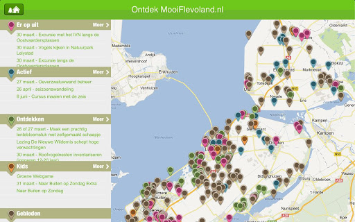 Flevoland kent een jonge en verrassende natuur. Er valt veel te ontdekken. De app MooiFlevoland geeft een overzicht van activiteiten en excursies en prachtige gebieden in Flevoland. Ben je op zoek naar een leuke activiteit in de natuur? Open de app en kijk wat er in jouw omgeving wordt aangeboden door de diverse organisaties waarmee we samenwerken.
