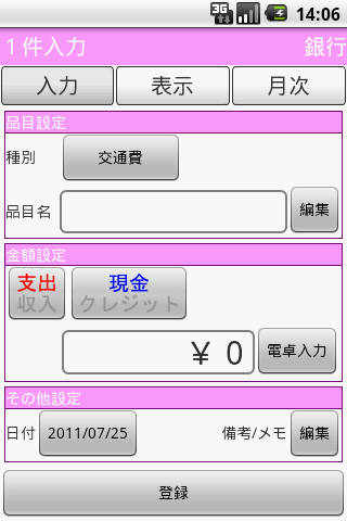 「よく使う機能ほどタッチ数は少なく」をコンセプトに、収支の入力ではなるだけ手数をかけない画面構成にしました。