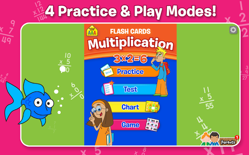 Multiply multiplication success! Flash cards are a time-tested, well-proven method for learning and reinforcing skills. These Multiplication Flash Cards allow for fast fun and hours of self-paced learning. Traditional “drills” are just a finger tap away! Four different play and learning modes in this great app from School Zone mean near-endless possibilities. Practice allows kids to guess the answer then quickly flip the card to see and hear the equation and answer. This technique reinforces and helps with memorization. Once kids build their confidence in the practice mode it’s time to test their multiplication skills! Kids use their finger or a stylus to actually write the answers, another great technique for retaining what is being learned. The program will decipher the handwriting, then ask kids to enter their answer or try again. For more multiplication fun we have made a traditional chart into a learning game. Filling in the missing numbers to finish the chart helps kids understand multiplication facts and fact families. We have even included a multiplication search and find game. Like a word search puzzle, kids find multiplication problems across, down and diagonally. With two levels of difficulty it challenges even the savviest mathematicians.