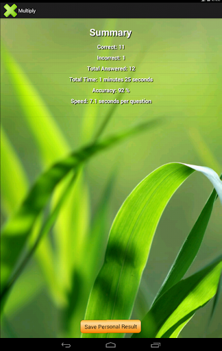 At the end of every game, a summary page analyzes your performance and suggests an area for improvement (if more than one table were chosen). Track your progress by entering your name and see how you improve over time. Compete with your friends by dominating the application’s high-score statistics!