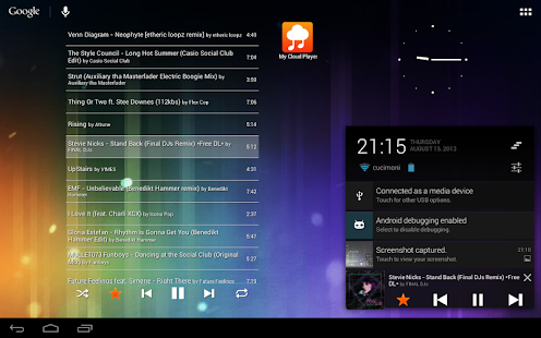 - Manage current playlist (drag artwork to reorder, fling to remove track)