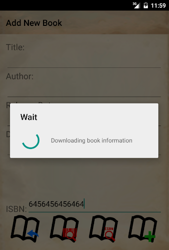 Application which helps catalouge books. Use add icon to create a new book record. You can scan ISBN number or write it to download information about book from internet. You can also add it manually.