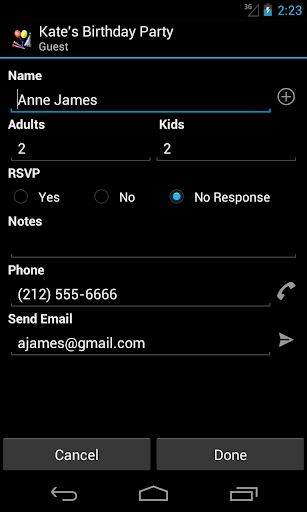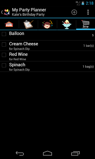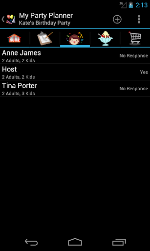 Please read before update!!! Due to the SD card access restriction introduced in Android KitKat(4.4+), you may lose your data when you update this app. Please backup data periodically or at least before you get update of this app. The events are saved under \mypartyplanner\ on your SD card(or other external storage). You can make a copy of the whole folder. You can also email your event using the "Send Event" under "Menu". To restore your lists, simply copy the folder back or drop the attached file in email to that folder.