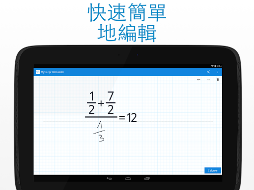 方便,簡單,直觀,只需在屏幕上寫出數學表達式,然後讓MyScript 技術執行其神奇的符號和數字轉換,手寫筆跡便自動轉化為數字文本,並提供實時的結果。
