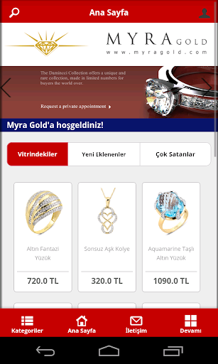 Binlerce çeşit altın ve pırlanta takıyı güncel olarak sizlere sunan Myra Gold, akıllı telefonlarınızda