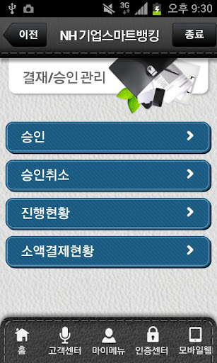 NH기업스마트뱅킹은 스마트기기(스마트폰,태블릿PC)에서 조회, 이체, 승인/결재 등 기업인터넷뱅킹 업무와 특화서비스 등을 이용하실 수 있습니다.