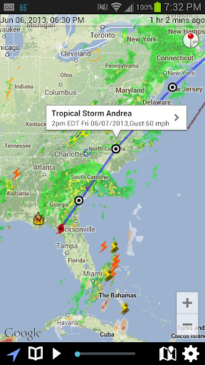 Plus this is the only app that automatically augments land-based radar images with latest images from NOAA satellites covering the Atlantic/Pacific oceans into one single screen. This lets you track and follow the upcoming hurricanes and storms all from the same map.