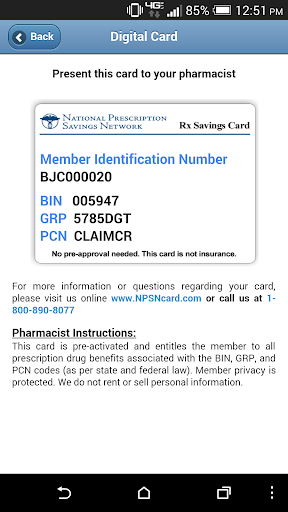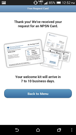 Our mission is to provide instant, easy and free prescription benefits to our cardholders. Download the National Prescription Savings Network Mobile App and view your Rx discount card for immediate savings. Just present the mobile NPSN card to your pharmacist next time you pick up your prescription, and save right at the register!