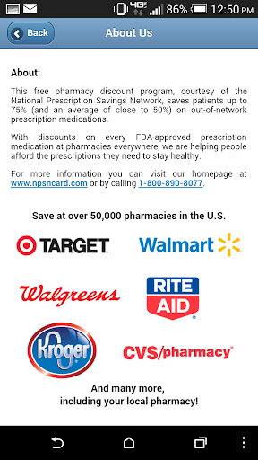 The NPSN card offers up to 75% in savings on over 50,000 FDA-approved medications. The card works at most pharmacies, including major chains and independents. Average savings are 50% or $150 annually per user. We are aligned with a Top 5 pharmacy benefit manager who has negotiated discounted rates on medications. And because the NPSN card is not insurance, it's FREE.