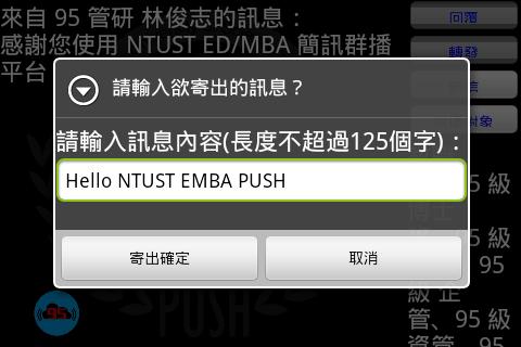 國立台灣科技大學 NTUST 管理碩士在職專班 EDBA/EMBA 學生用簡訊 訊息推播 Push 平台